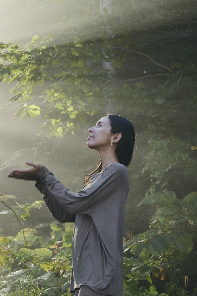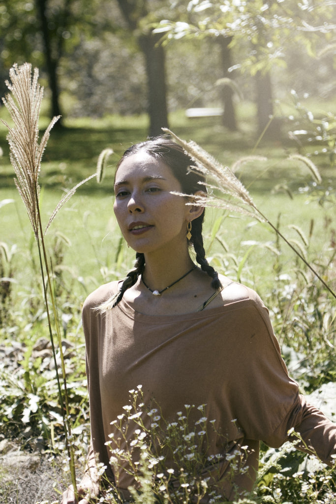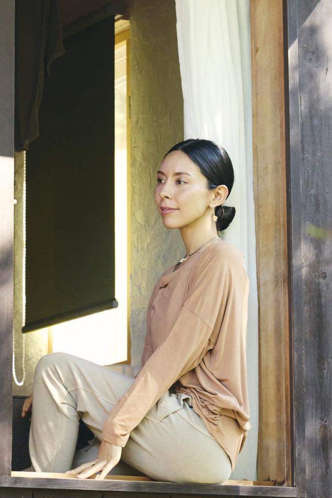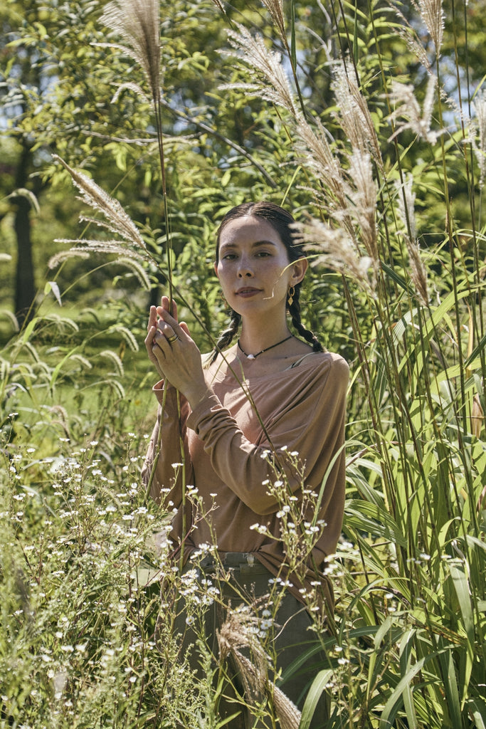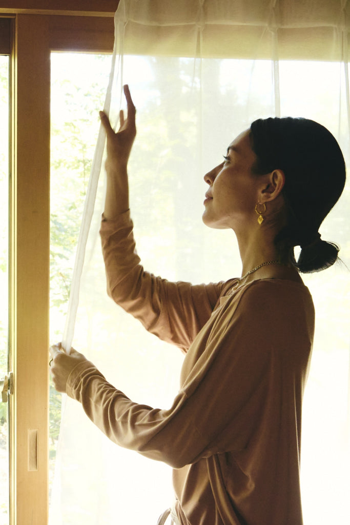 The gentle texture has a heavy texture that moisturizes the skin and blends in with any occasion. The design is simple but has a lot of attention to detail.The boat neckline creates a beautiful collarbone area, and the shoulder area is loose and tapers towards the wrist, creating a beautiful line. The back is long enough to hide your buttocks, and the front is slightly shorter with a soft curve.